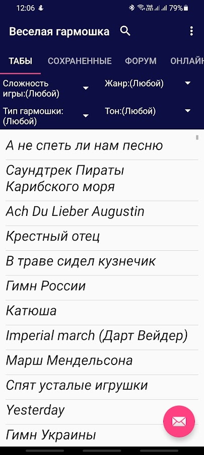 Приложение с табами(ноты,аккорды…) для губной гармошки.
