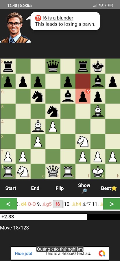 ✔ Оценка хода: определяйте лучшие ходы, ошибки и упущенные возможности.