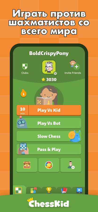 — ChessKid — больше чем приложение. Это ваш шанс БЕСПЛАТНО играть в шахматы с детьми из разных стран и присоединиться к многочисленному сообществу юных шахматистов, играющих на ChessKid!