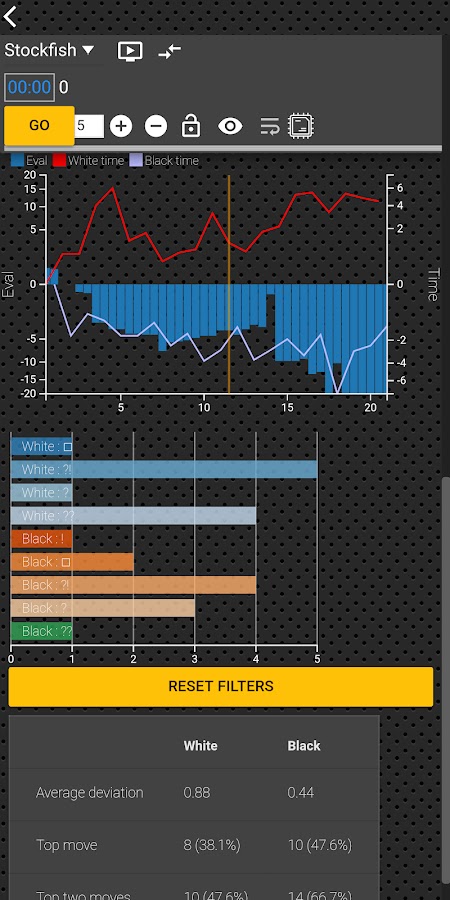 — Анализируйте позиции с помощью наших облачных движков (требуется премиум-членство). Облачные движки позволяют вам выполнять высококачественный анализ, не расходуя заряд батареи вашего устройства. Участники Diamond могут запрашивать до 8 потоков анализа, анализируя во много раз больше позиций в секунду, чем может предоставить движок, работающий на вашем устройстве.