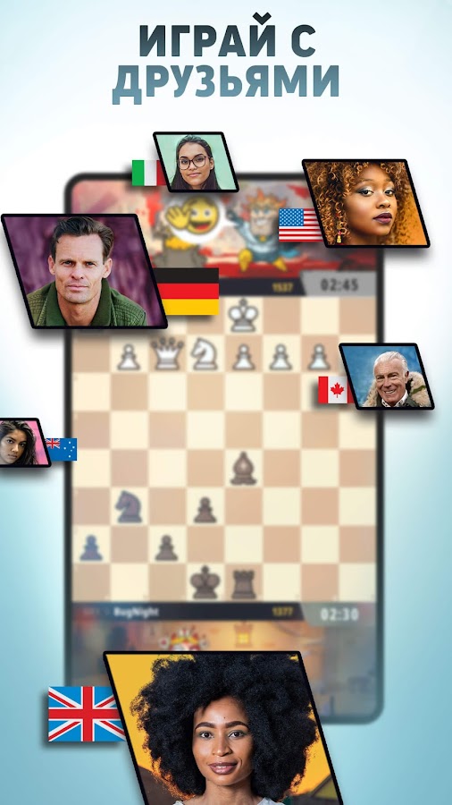 Приглашайте друзей и наслаждайтесь социальными онлайн-шахматами.