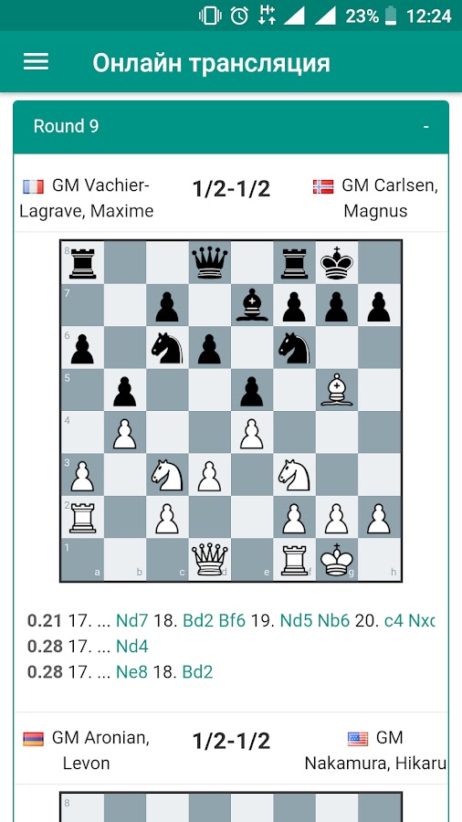 Следите за играми сильнейших гроссмейстеров LIVE с одновременным облачным анализом от Stockfish 14 и LCZero. Получайте уведомления о главных событиях перед их началом.