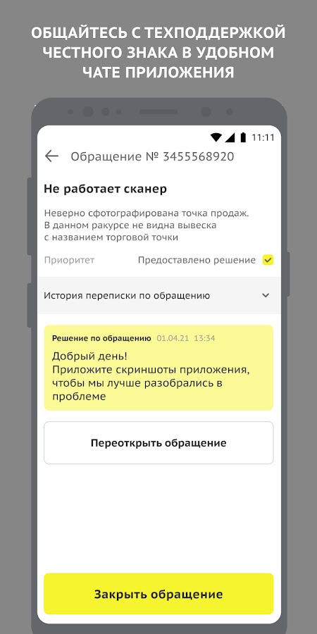 • Общайтесь с техподдержкой Честного ЗНАКа в удобном чате приложения
