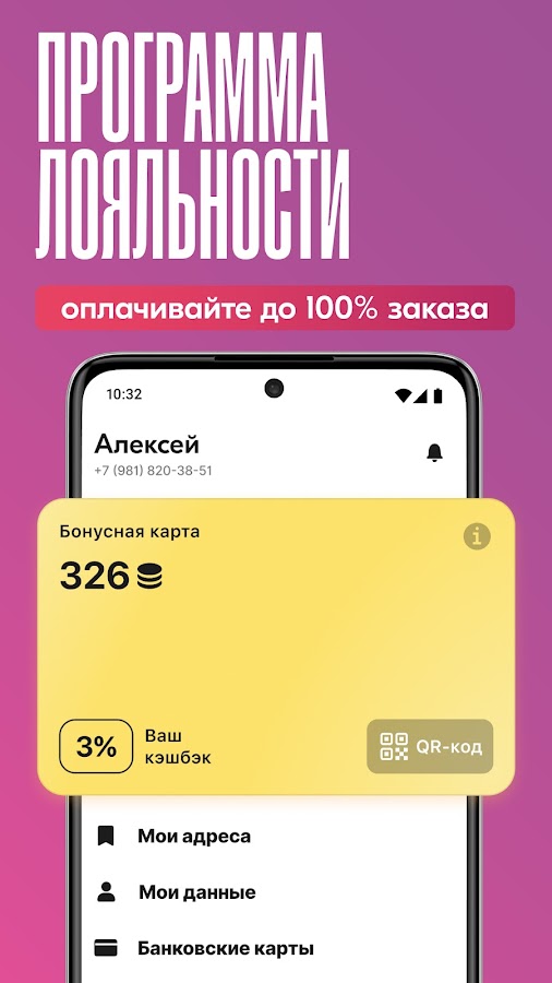 Заказывайте ваши любимые блюда и копите бонусы, которые начисляются с каждого заказа. Бонусами можно оплатить до 30% стоимости заказа
