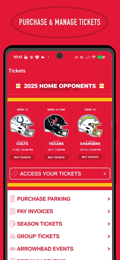 Руководители Mobile является официальным приложением руководителей Канзас-Сити. С помощью Chiefs Mobile вы 365 дней в году будете оставаться на связи с Chiefs Kingdom, предоставляя новости команд, обновленные составы, статистику и отчеты о травмах. Повысьте впечатления от игрового дня с помощью мобильных билетов, обмена сообщениями на стадионе, покупки билетов 50/50 в приложении и многого другого!