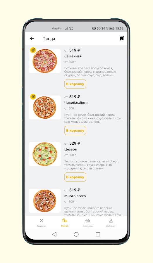 классическими и фирменными сортами пиццы;