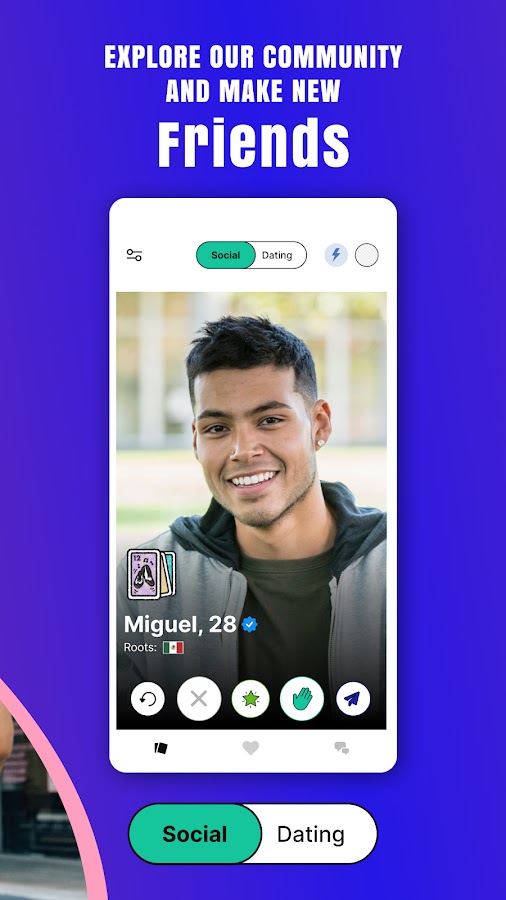 • Ставьте лайк и общайтесь с другими доступными латинскими участниками рядом с вами.