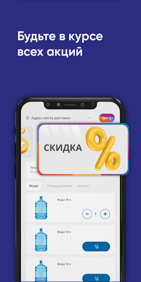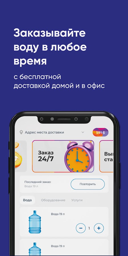 Скачайте бесплатное приложение на телефон и заказывайте чистую воду в удобное время!