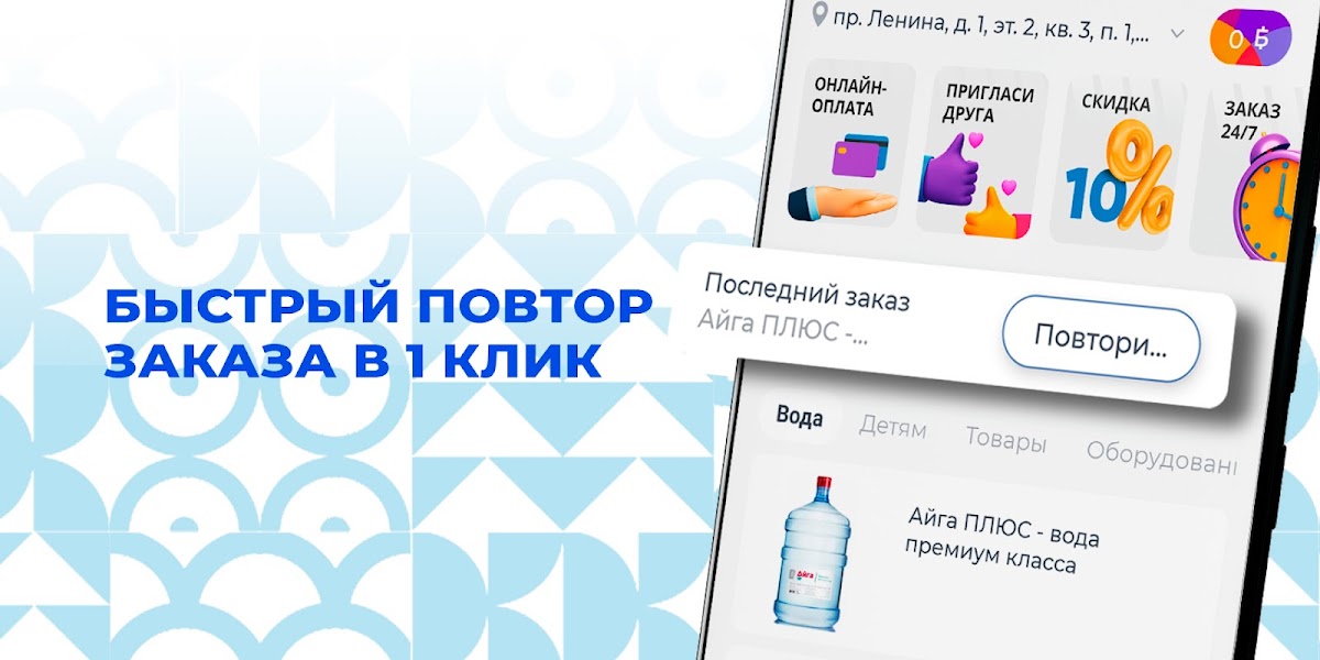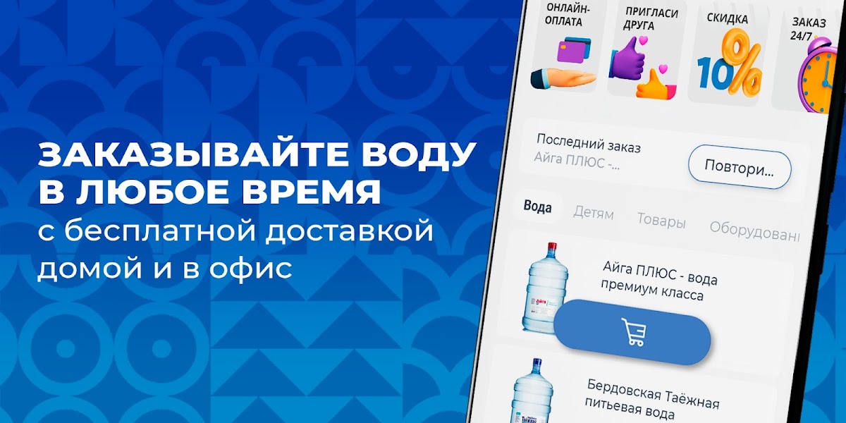 Скачайте приложение «Чистая вода Сибирь» на свой смартфон и оплачивайте покупки онлайн. Вы сможете повторять заказ нажатием одной кнопки, видеть всю историю покупок и быть в курсе всех спецпредложений.