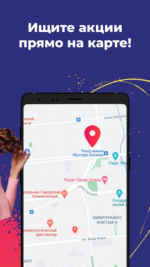 — С помощью карты вы можете найти скидки в заведениях рядом с вами! И каждый раз экономить на салонах, химчистках и кафе!