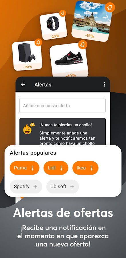 Добро пожаловать во вселенную Chollometro, где поиск непревзойденных предложений — это суть всего, что мы делаем. Получите доступ к множеству кодов скидок, купонов, подарков и невероятных предложений с помощью нашего бесплатного мобильного приложения. Присоединяйтесь к процветающему сообществу, насчитывающему более 2,3 миллиона умных потребителей в Испании, и начните получать максимальную отдачу от своих денег.