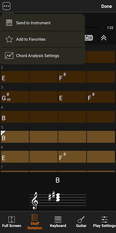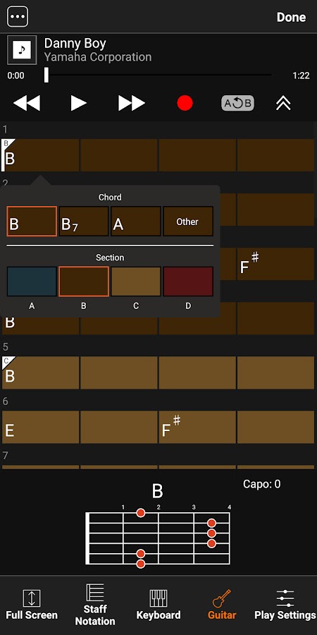 Темп и тональность можно изменить по желанию для вашей практики или выступления. Вы даже можете редактировать аккорды, чтобы создать собственную аранжировку песни, выбрав один из двух рекомендуемых аккордов или выбрав основной аккорд и тип аккорда.