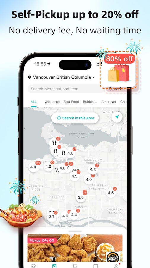 Среди ресторанов-партнеров: Haidilao Hotpot, Coco Bubble tea, Sharetea, Dinesty, Church’s Chicken, Subway, Me+Crepe, Old Xian и другие. Барбекю, тушеное мясо с мясом, пельмени, димсам, пузырьковый чай, поздний завтрак, торт…
