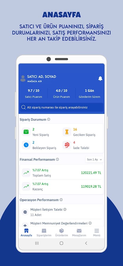 📱 Следить за своим рынком с помощью приложения Панель продавца Çiçeksepeti Pazaryeri очень просто! Вы можете в любое время легко следить за своими транзакциями продаж со своего мобильного телефона, следить за развитием событий и предпринимать необходимые действия.