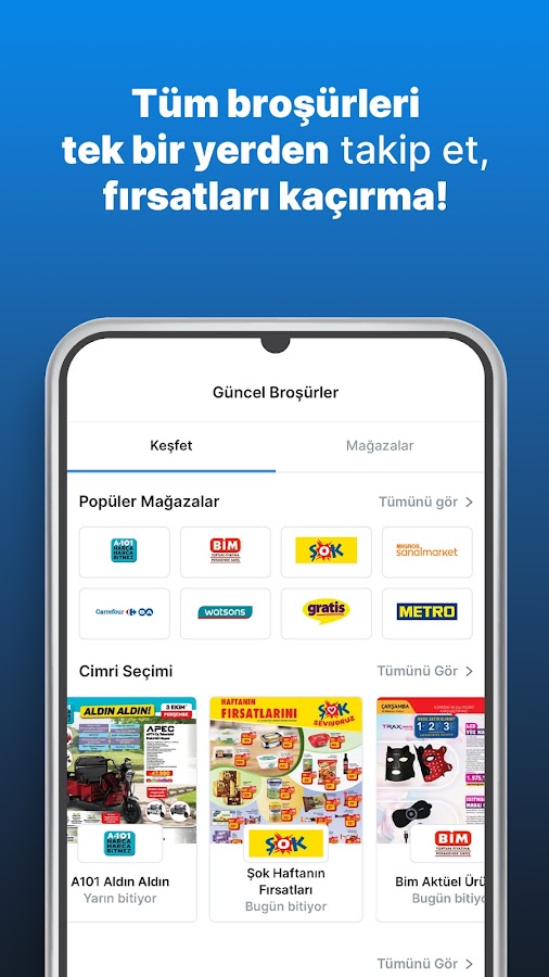 Ознакомьтесь с актуальными брошюрами популярных магазинов, таких как A101, Bim, Şok, Carrefour, Migros, Getir, Watsons, Gratis на Cimri. Будьте в курсе каталогов скидок и актуальных товаров!