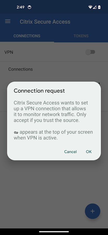 & бык; Если вы развертываете приложение Citrix Secure Access в управляемом рабочем профиле или профиле устройства, оно использует разрешение QUERY_ALL_PACKAGES. Это разрешение используется администратором предприятия для подготовки управляемых конфигураций VPN. Управляемая конфигурация VPN обеспечивает контролируемый доступ к сеансу VPN из определенных приложений на вашем устройстве Android из рабочего профиля или профиля устройства. Также рекомендуется предварительно предоставить разрешение POST_NOTIFICATIONS приложению Citrix Secure Access, чтобы оно могло показывать статус VPN и push-уведомления пользователю на устройствах с Android 13 и более поздних версий.