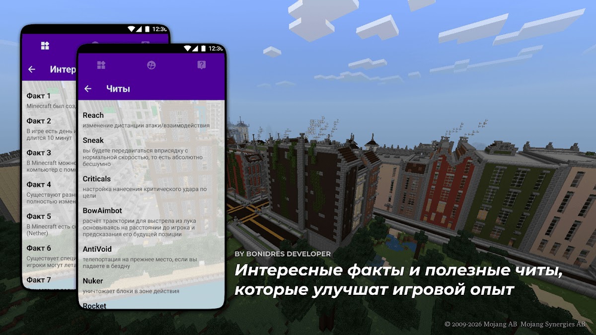DISCLAIMER: Это неофициальное приложение. Это приложение не связано с Mojang AB. Название, марка и активы являются собственностью владельца http://account.mojang.com/documents/brand_guidelines