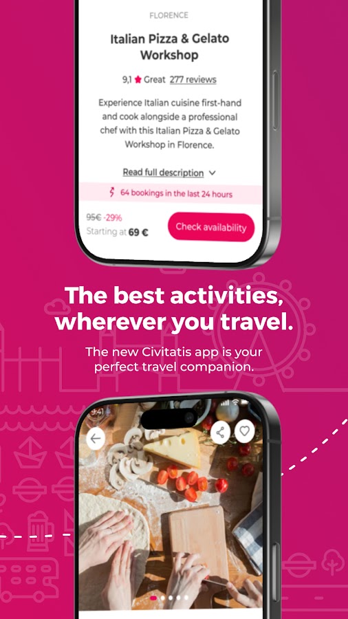 Независимо от того, находитесь ли вы на начальном этапе планирования поездки или ищете идею в последнюю минуту, новое и улучшенное приложение Civitatis предлагает широкий выбор тщательно отобранных вариантов для каждого типа путешественников. Благодаря более чем 5 миллионам проверенных отзывов, круглосуточной поддержке клиентов и лучшей в отрасли гибкости, вы можете с уверенностью организовать свою поездку.