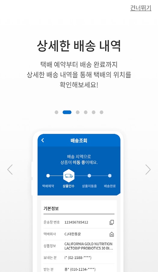 Кроме того, обычные клиенты могут воспользоваться услугами общего обслуживания клиентов курьерской службы CJ Korea Express с простой аутентификацией по номеру телефона.