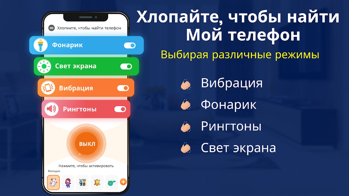 👏 «Clap to Find Phone» — это умное и простое решение, которое поможет вам найти потерянное устройство за считанные секунды. Если вы часто забываете, где оставили свой телефон дома, в офисе или в комнате, приложение «Найти телефон свистком» создано для вас. Просто хлопнув в ладоши или посвистев, ваш телефон мгновенно отреагирует звуком, вибрацией или светом фонарика. Кроме того, вы можете установить звуки, доступные в этом приложении, в качестве мелодии звонка по умолчанию для вашего телефона.
