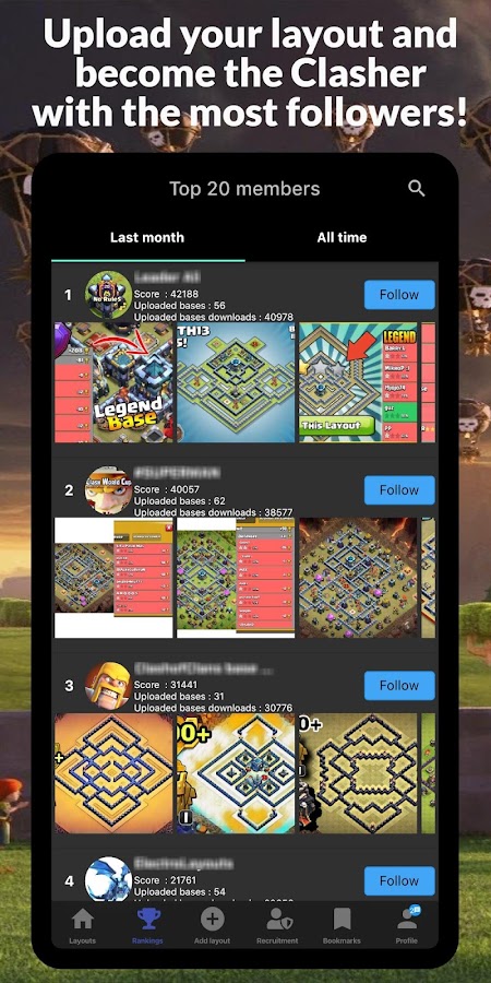 ⋆ Вам нужно управлять множеством базовых раскладок и проверять и оценивать их другими игроками в clash?