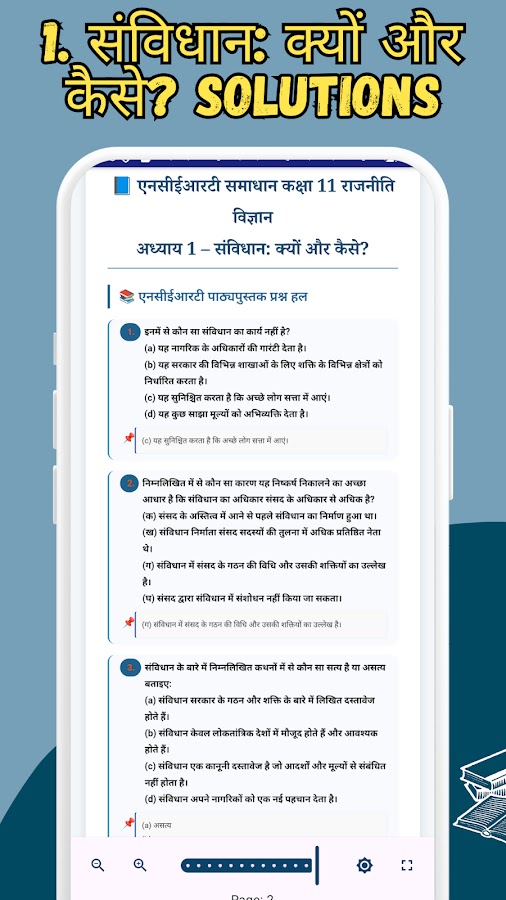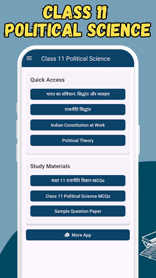 Are you struggling to understand the complexities of the Indian Constitution or Political Theory? Stop worrying! The «Class 11 Political Science: Notes & MCQ» app is the most comprehensive study solution designed specifically for students of CBSE, NCERT, UP Board, and other State Boards. Whether you want to top your school exams or you are building a foundation for CUET, UPSC, or Law Entrance (CLAT), this app is your perfect digital tutor.