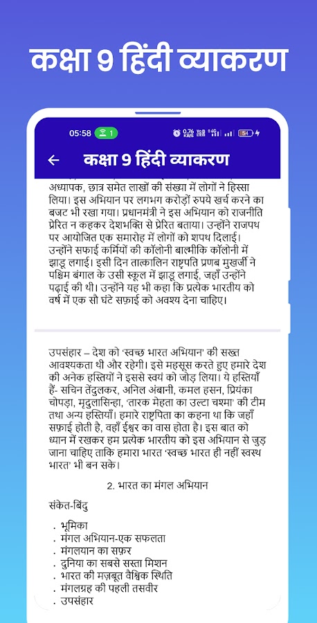 Это приложение представляет собой совокупность решений класса 9 Hindi Grammar Vyakaran наиболее систематическим образом. Это поможет в быстрой доработке, если вам понравилось наше приложение. Пожалуйста, оцените нас.