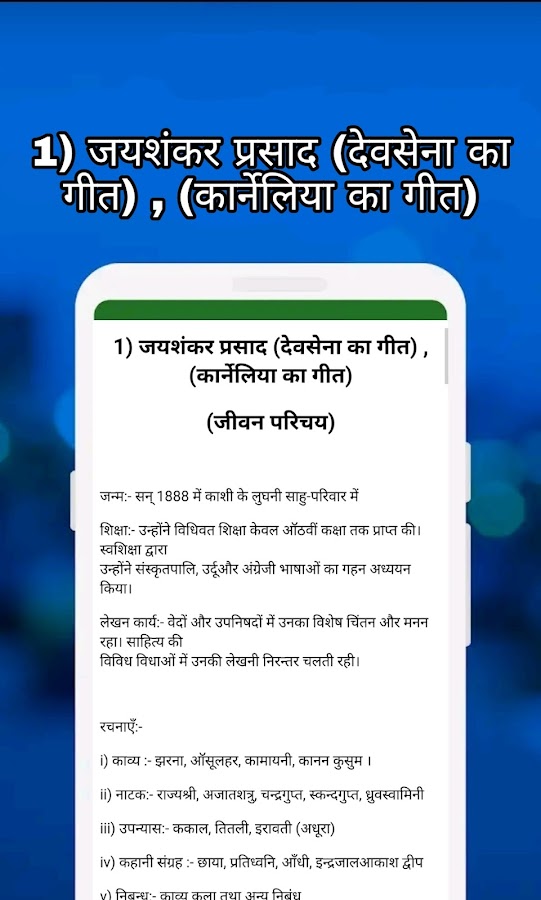 1) जयशंकर प्रसाद (देवसेना का गीत), (कार्नेलिया का गीत)