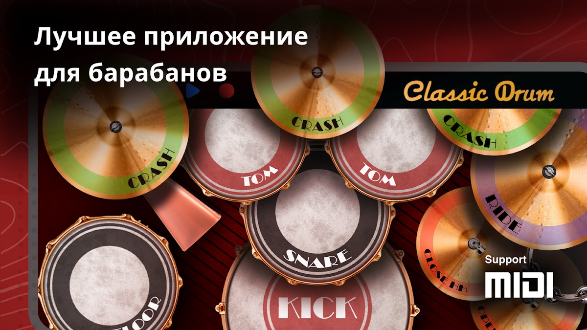 Нет проблем! Classic Drum предлагает широкий спектр ударных музыкальных инструментов с высококачественными звуками, что позволяет вам играть любую музыку, которую вы хотите!