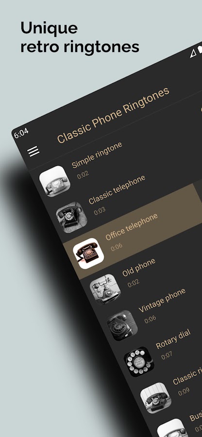 Вы ищете старые классические рингтоны для телефона? Вам надоели популярные рингтоны нового времени и хочется чего-то старого и классического? Вы можете прекратить поиски! Вы нашли его! Классические рингтоны для телефона — идеальный выбор для вас! Классические мелодии для телефона — это классное приложение с лучшими старыми мелодиями для вашего устройства! Если вы просто хотите услышать винтажные звуки и иметь старые стандартные рингтоны, или просто заглянуть в прошлое, Классические рингтоны для телефона — идеальное приложение для вас. Приятный ретро-дизайн, винтажные и хипстерские тематические кнопки и громкие рингтоны из прошлого — это приложение навеет приятные воспоминания. Мы тщательно отобрали только лучшие классические рингтоны для телефонов и добавили их в это бесплатное приложение. Вам понравятся звуки, включенные в коллекцию этого приложения.