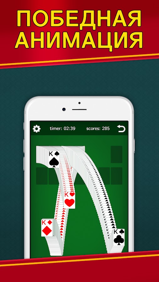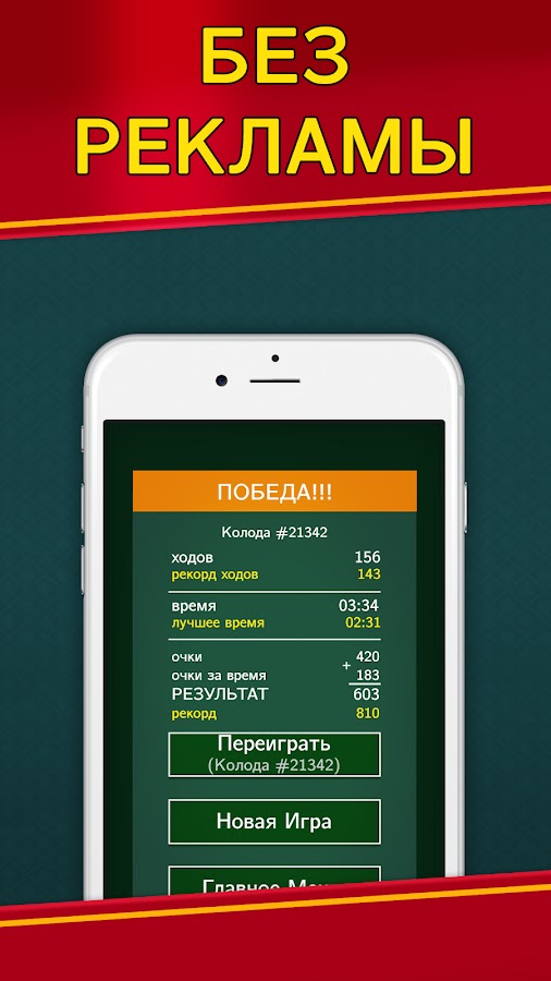 Без интернета! Без рекламы! Косынка не требует онлайн подключения — играйте оффлайн бесплатно, без регистрации и смс :)