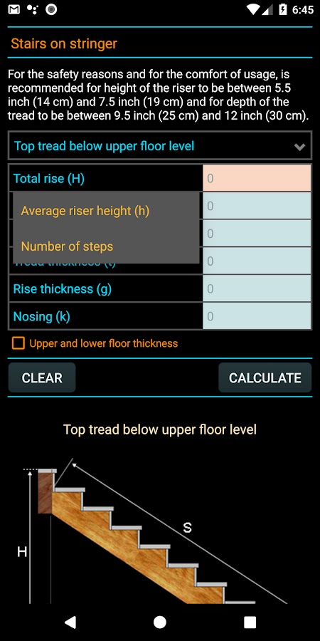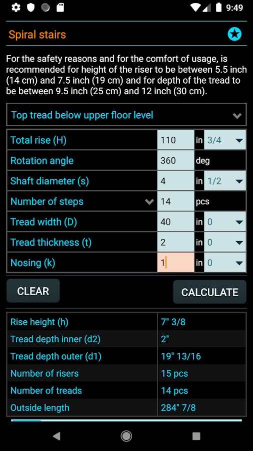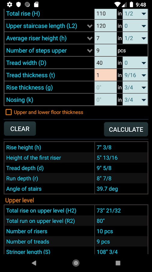 Классический лестничный калькулятор поможет вам быстро, точно и без каких-либо ограничений рассчитать количество ступенек. Все, что вам нужно сделать, это поместить нужные измерения в приложение и нажать кнопку «Рассчитать», и ваш результат мгновенно появится и будет готов к использованию для построения плана лестницы.