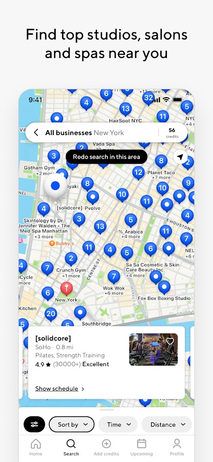 • Посещайте тренировки в популярных и любимых студиях, таких как Pure Barre, Anytime Fitness Gym, Barry’s Bootcamp, CycleBar, [solidcore], FlyWheel, Barre3, Row House, Yoga Six, CorePower Yoga, Y7, Orange Theory Cityness, Crunch Gym, Y7 Yoga, GoYoga, Black Swan Yoga и многих других!