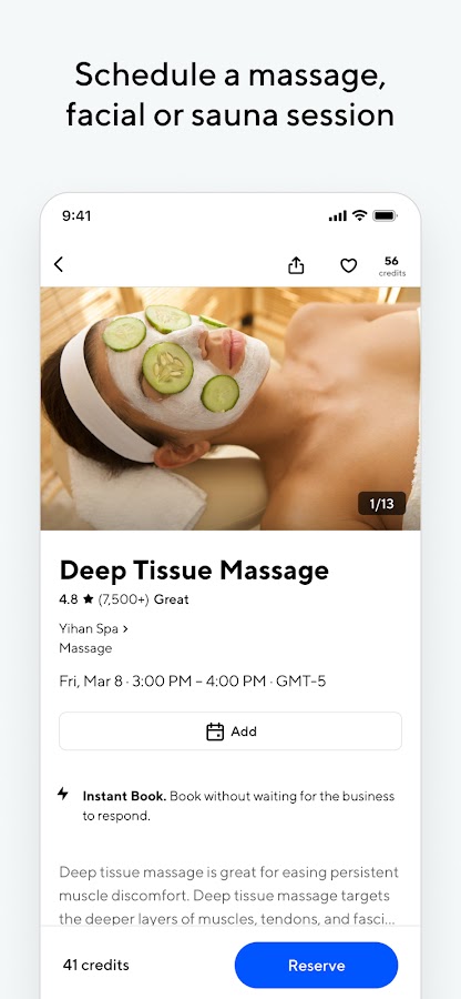 • Используйте ClassPass для своего тела и разума. В некоторых регионах вы можете забронировать сеансы медитации, массаж, сауну, посещение спа-салонов, салонов красоты, криотерапию и другие оздоровительные мероприятия.