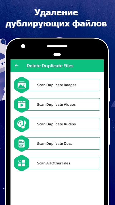 Приложение для очистки хранилища может сканировать и удалять множество типов дубликатов файлов, таких как дубликаты изображений, дубликаты видео, дубликаты аудио и другие дубликаты файлов.