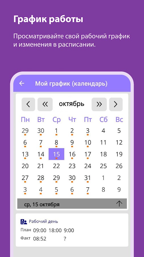 ✓ просматривать свой рабочий график и изменения в расписании;