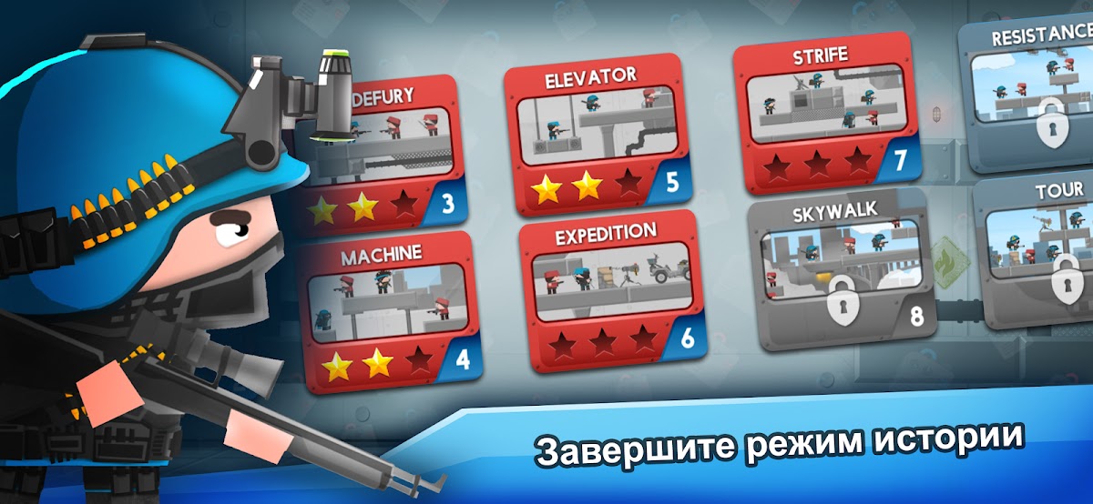 В сюжетном режиме вы — изобретатель революционной машины клонирования. Однако ваше изобретение попало в чужие руки, поскольку суперзлодей по имени Фредерико украл его и намерен использовать для уничтожения мира. Ваша миссия — остановить Фредерико и спасти мир, пока не стало слишком поздно. Вам предстоит совершенствовать свои навыки стрельбы и убивать врагов в этой игре-стрелялке с армией клонов. В этом режиме есть стрельба, платформер, мультиплеер, армии, война, добро против зла и герой против злодея! Добавьте еще больше остроты в эту армейскую схватку с помощью многопользовательского режима!