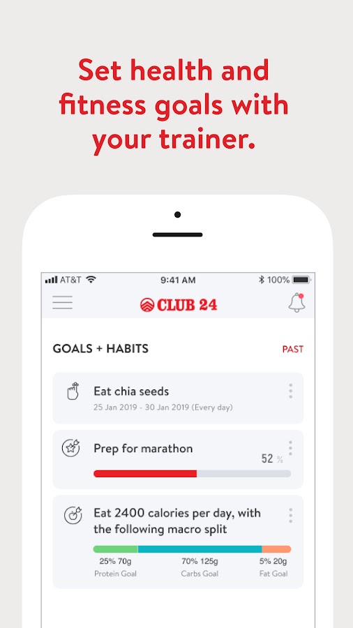С помощью приложения Club 24 вы можете начать отслеживать свои тренировки и приемы пищи, измерять результаты и достигать своих целей в фитнесе, и все это с помощью вашего личного тренера.