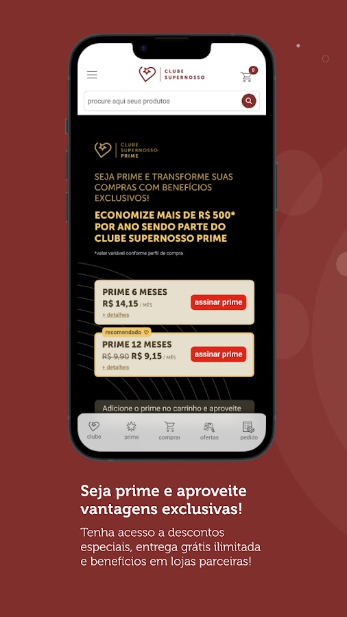 Подпишитесь на Prime Supernosso раз в полгода или ежегодно через приложение Clube Supernosso и гарантируйте еще больше преимуществ, скидок и привилегий.