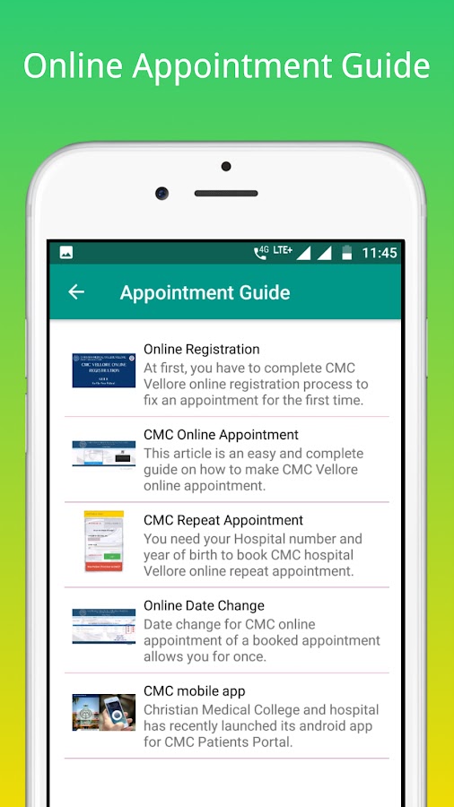За разработкой приложения «Руководство для пациентов CMC Vellore» стоит честная инициатива по предоставлению различной информации и рекомендаций (очень полезных для пациентов и их семей) о больнице, Христианском медицинском колледже, широко известном как CMC или Vellore Hospital.