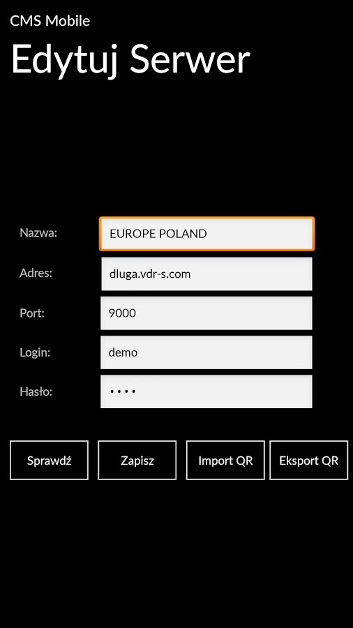CMS Мобильная позволяет управлять поворотными камерами с зумом вариантов, легко добавляет новые серверы, используя QR-коды, магазин список серверов в один диск облачного сервиса для резервного копирования и настроить дополнительные тревоги, вызванные движением на любой выбранной камеры.