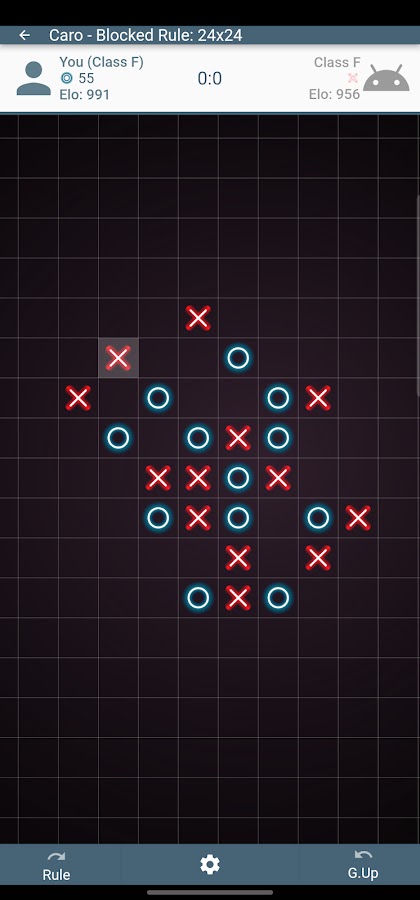 + CARO (правило блокировки — также называемое Gomoku+, популярное среди вьетнамцев): Победитель должен иметь верхнюю линию или непрерывный ряд из пяти камней, которые не должны быть заблокированы с обоих концов: XOOOOOX и OXXXXXO не будут считаться выигрышной линией.