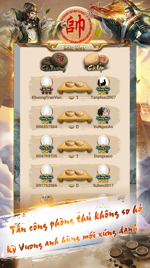 Эта игра, включающая 2 игры: китайские шахматы онлайн и китайские шахматы, представляет собой шахматную игру со смелой вьетнамской культурой, где талантливые люди и талантливые игроки сходятся на уровне битвы, родилась с желанием привнести культуру. От офлайн до мобильных устройств, объединяя шахматное сообщество, принося игрокам лучший опыт.