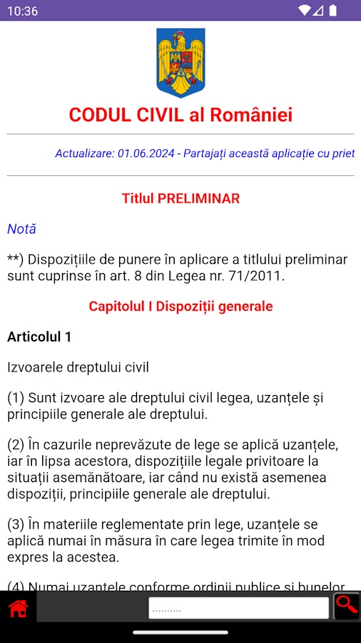 Скачайте приложение Codul Civil al României для Android бесплатно - последняя версия (8.0) уже доступна для установки на ваш телефон или планшет.