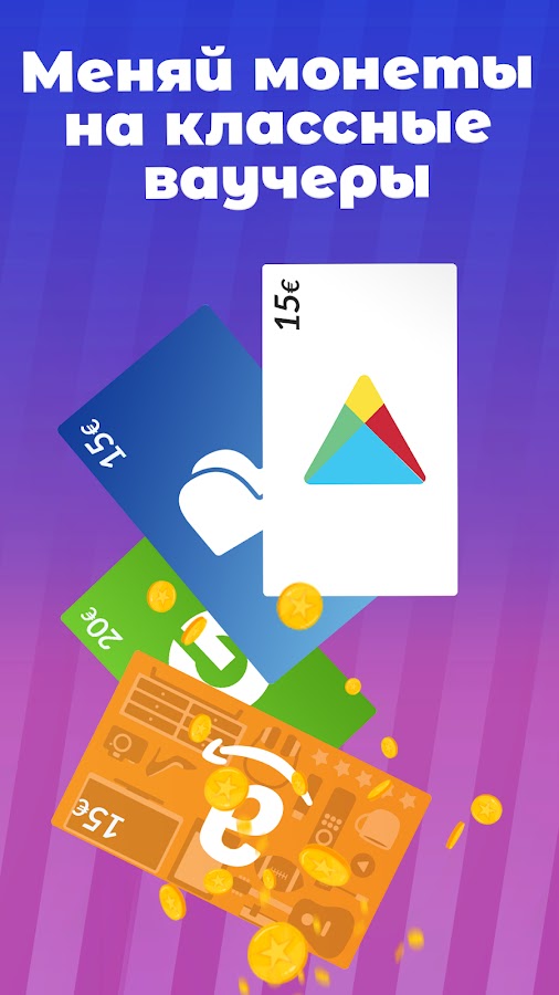 Получай потрясающие подарочные карты, денежные вознаграждения и ваучеры за игру в мобильные игры!