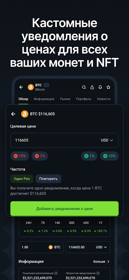 ❖ Устанавливать персонализированные оповещения о ценах с оповещениями о движениях крупных рынков