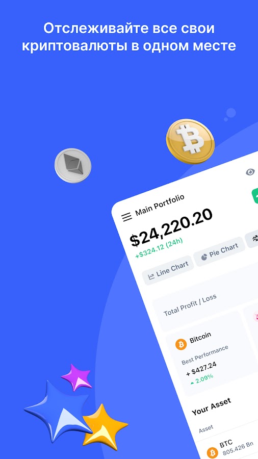 Зарегистрируйтесь, чтобы создать свой крипто-портфель. Создавайте и делитесь своими списками избранного, подписывайтесь на списки друзей. Режим инкогнито без входа систему и локальным сохранением данных. Светлая и темная темы.