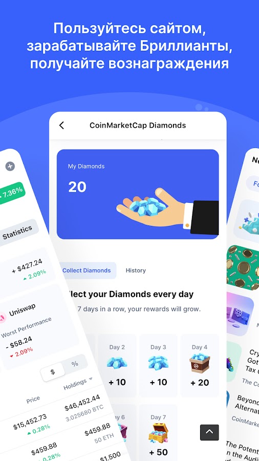 🚀 Быть в курсе актуальных новостей крипто-индустрии и статистики криптовалюта с этим приложением.