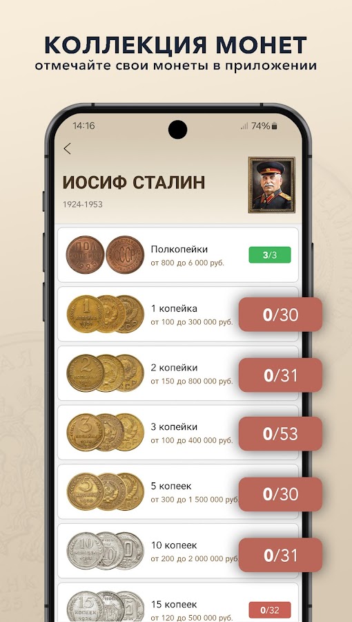 Будь вы опытным коллекционером или начинающим энтузиастом, приложение Монеты СССР и РФ поможет вам легко ориентироваться в мире нумизматики и не упустить важные моменты при покупке или продаже монет.