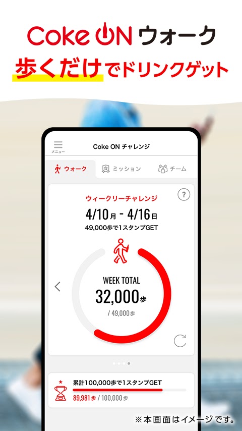 ■Чем больше вы ходите, тем больше купонов вы получаете! Поставьте себе цель по количеству шагов и ходите пешком каждый день, чтобы получать штампы за её достижение. Кроме того, мы будем проводить различные ограниченные по времени акции Coke ON Walk!
